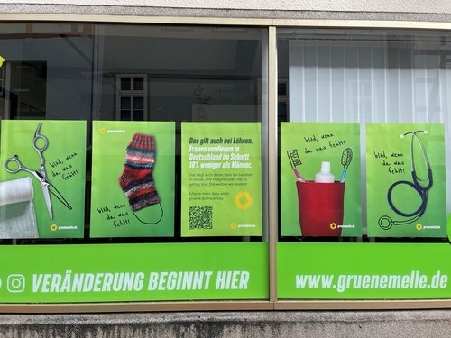 Um auf die ungleiche Behandlung und Bezahlung von Frauen hinzuweisen, haben wir in der Geschäftsstelle eine Plakataktion gestartet.