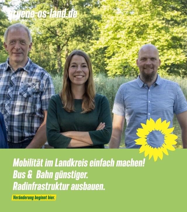 Für den Kreis kandidieren bei uns in Melle für die Plätze 1-4 im Wahlbereich 10 Malina Kruse-Wiegand, Philipp Petermann, Silke Meier und Jürgen Ebert. Im Wahlbereich 9 (zusammen mit Bissendorf) Anna Stascheit und Alfred Reehuis auf Platz 2 & 4.