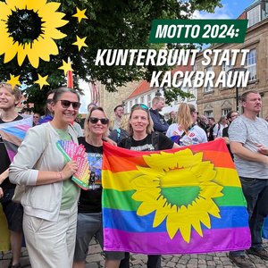 "Kunterbunt statt Kackbraun" lautete das Motto des diesjährigen Christopher Street Day in Osnabrück. Die GRÜNEN aus Osnabrück, Melle und Umgebung feierten mit über 3500 Menschen in einem fröhlichen Umzug und natürlich gab es auch deutlichen Forderungen an die Politik. Wir sind dran, denn: die Zeiten gendern sich 💪🏳️🌈💚