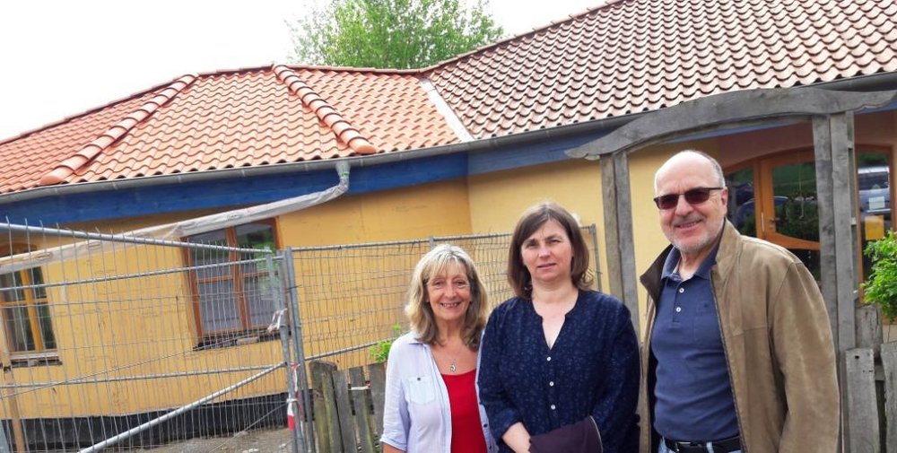 Silke Meier und Reinhardt Wüstehube informieren sich bei der Leiterin Christiane Nowak über die geplanten Erweiterungen im Waldorf Kindergarten in Eicken-Bruche.